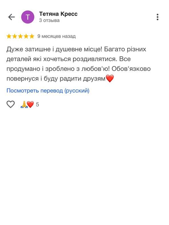Ми створювали цей комплекс із душею, втілюючи все, що нас надихає. Кожна деталь у вінтажному стилі ретельно підібрана, а атмосфера наповнена затишком, ароматною кавою та запашними трав’яними чаями.